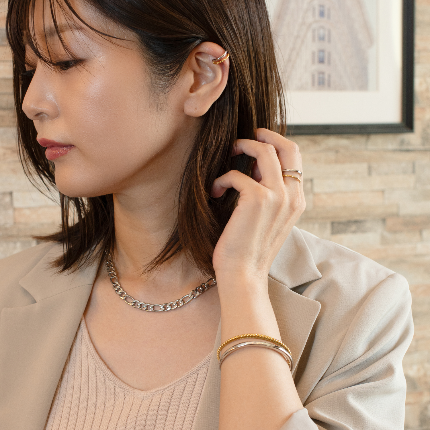 バイカラーイヤーカフ